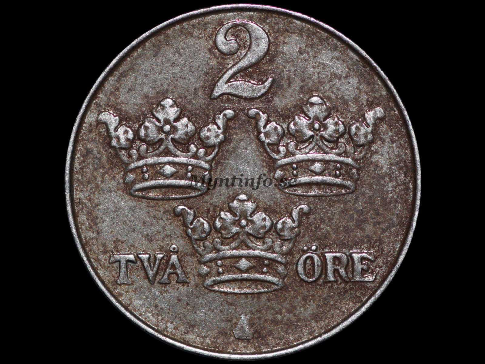 Under perioder av metallbrist präglades dock ett begränsat antal 2-öringar i järn, främst under åren 1917–1950. År 1952 återgick man till brons igen.