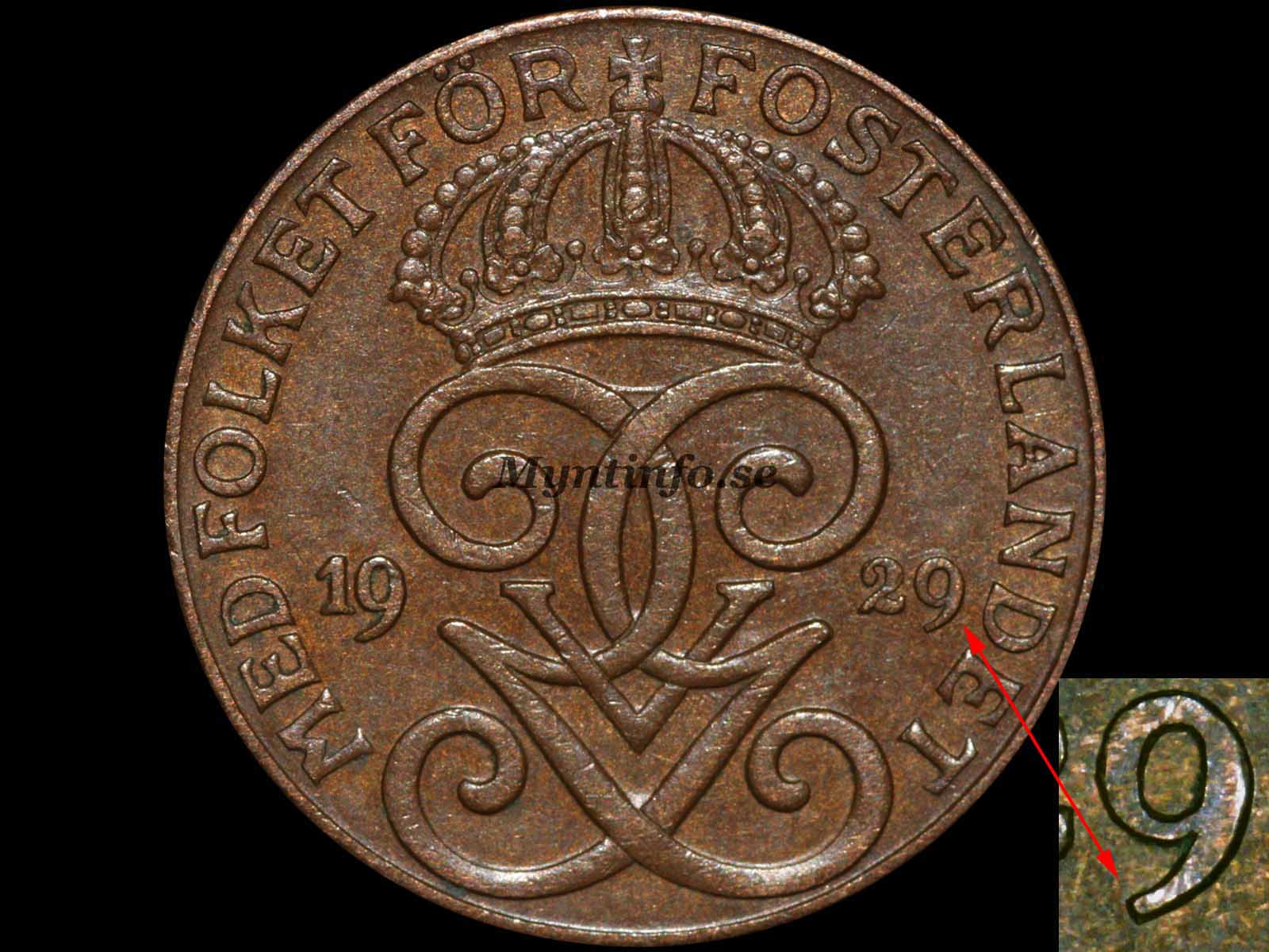 År 1929 finns det totalt två kända varianter ifrån 2-öresserien som vi ska gå igenom, och vi visar även upp en samlingsbild i slutet på båda varianterna sida vid sida.