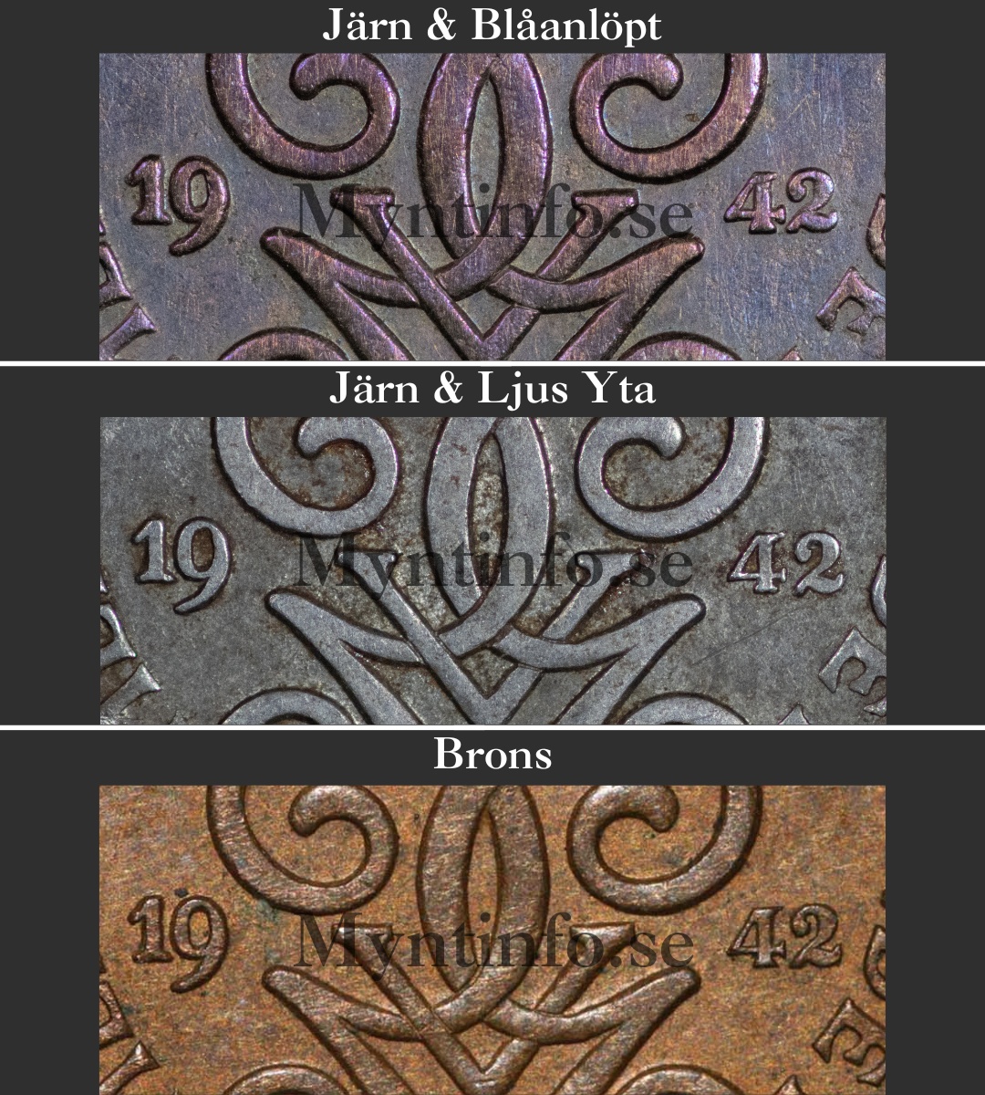 År 1942 är ett spännande år då 2-öringen tillverkades i tre olika varianter, både i brons och järn. Här går vi igenom skillnaderna och historien bakom de olika utförandena.
