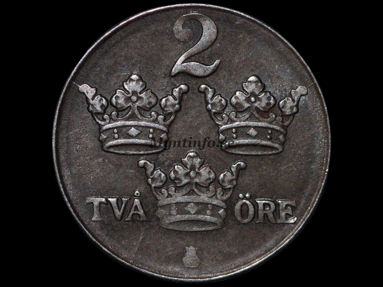 Under perioder av metallbrist präglades dock ett begränsat antal 2-öringar i järn, främst under åren 1917–1950. År 1952 återgick man till brons igen.