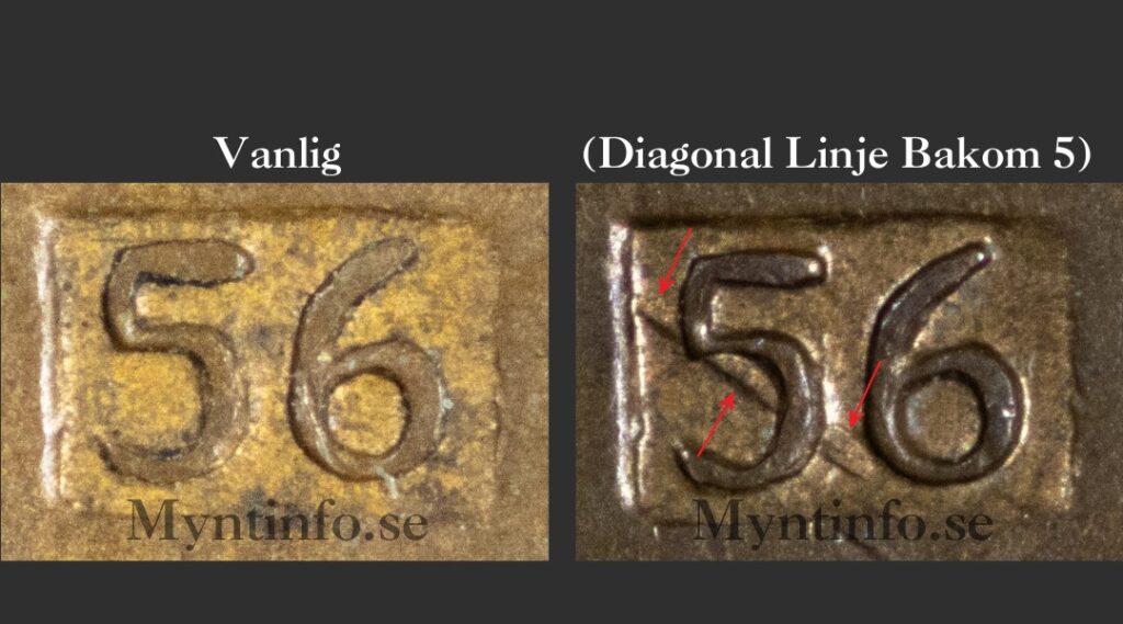 På bilden nedan har vi skapat en samlingsbild på båda varianterna så att du enkelt kan se skillnaden mellan det vanliga utförandet och varianten med den diagonala linjen bakom 5:an.