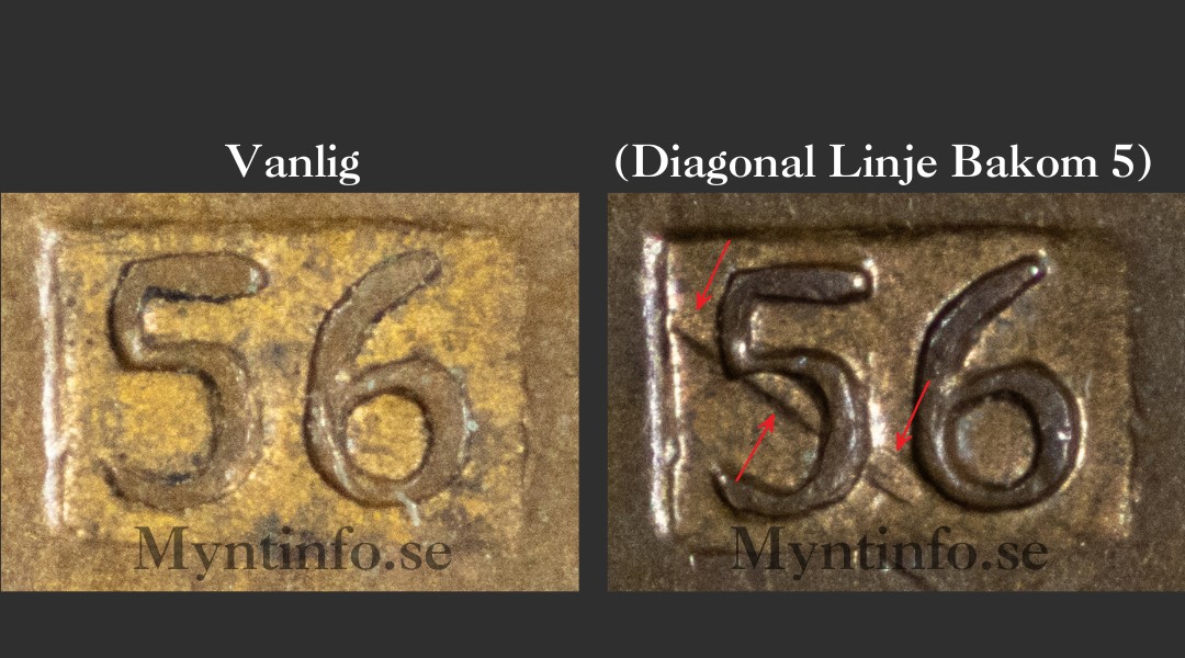 Den första varianten har inget särskilt namn utan nämns oftast bara som det ordinarie årtalet 1956. I den här texten väljer vi att kalla den för ”vanlig” för att lättare kunna skilja dem åt. Denna variant har inga avvikande detaljer utan följer helt originalprägeln för året.