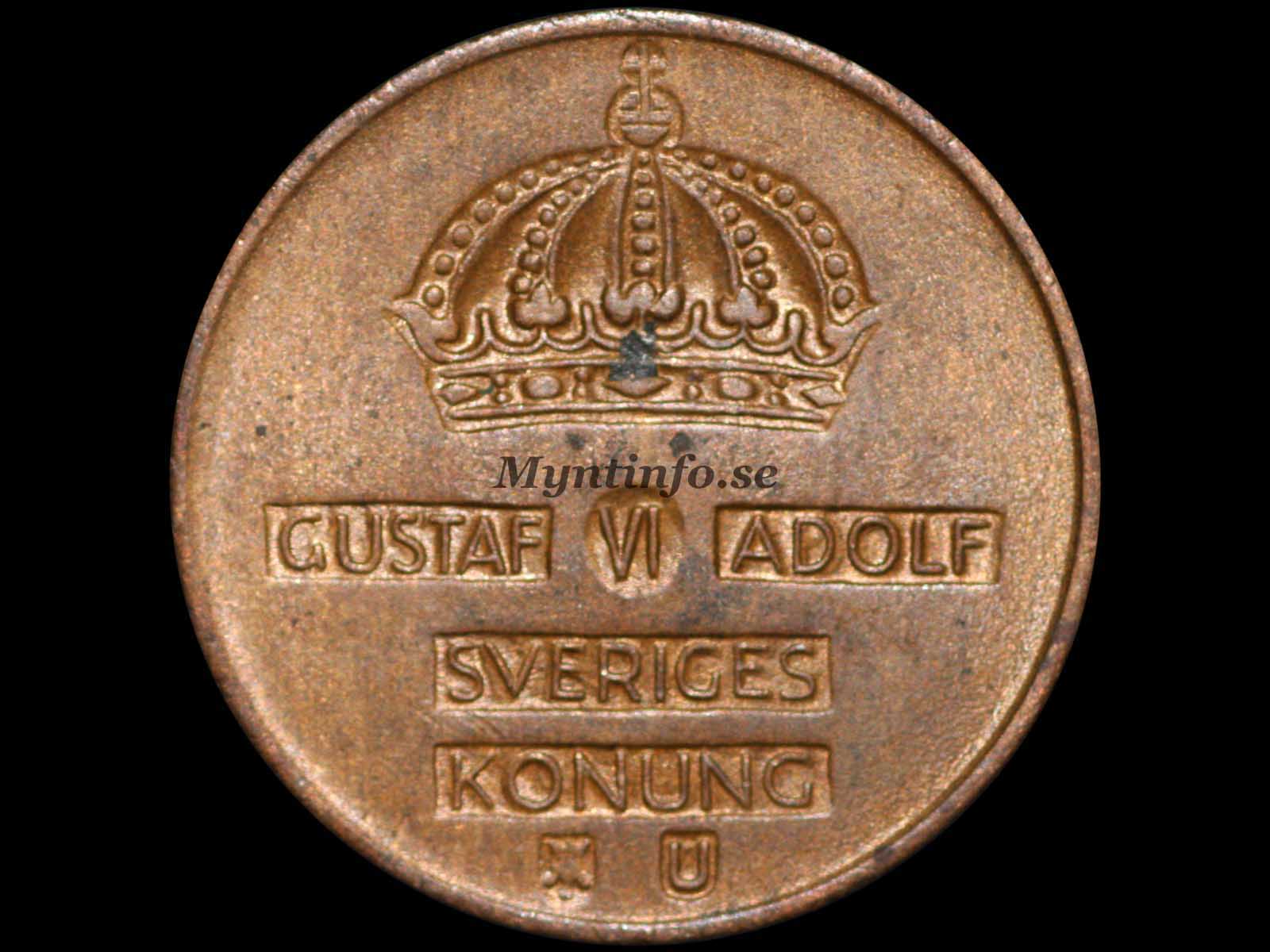 Framsida (åtsida) -GUSTAF VI ADOLF – SVERIGES – KONUNG – U