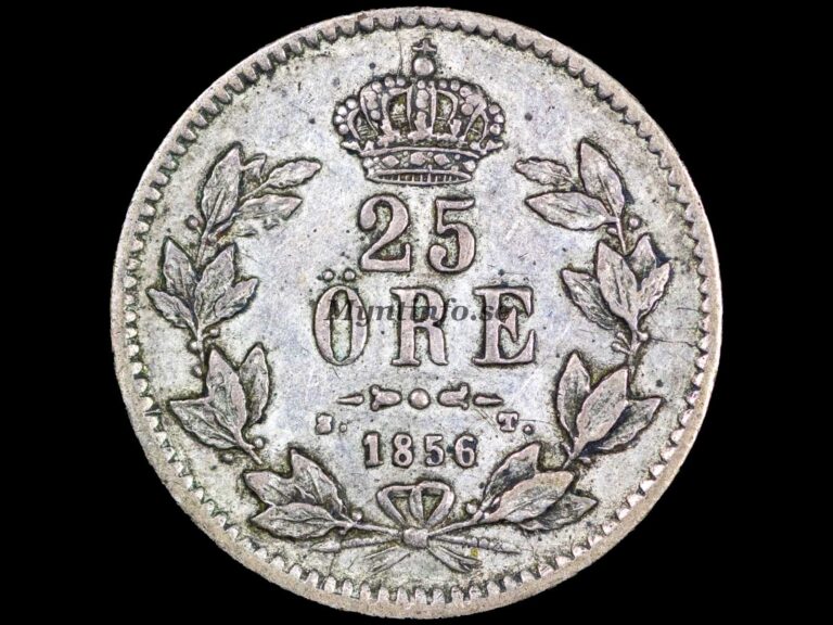 År 1856 är utan tvekan ett av de mest fascinerande åren för den svenska 25-öringen, särskilt när det kommer till myntets olika varianter. Här på Myntinfo har vi samlat information om hela nio kända varianter, och vi kommer att guida dig igenom varje unik detalj. Eftersom många av varianterna saknar etablerade namn, har vi infört egna beskrivningar för att underlätta identifieringen och ge dig en så tydlig bild som möjligt.